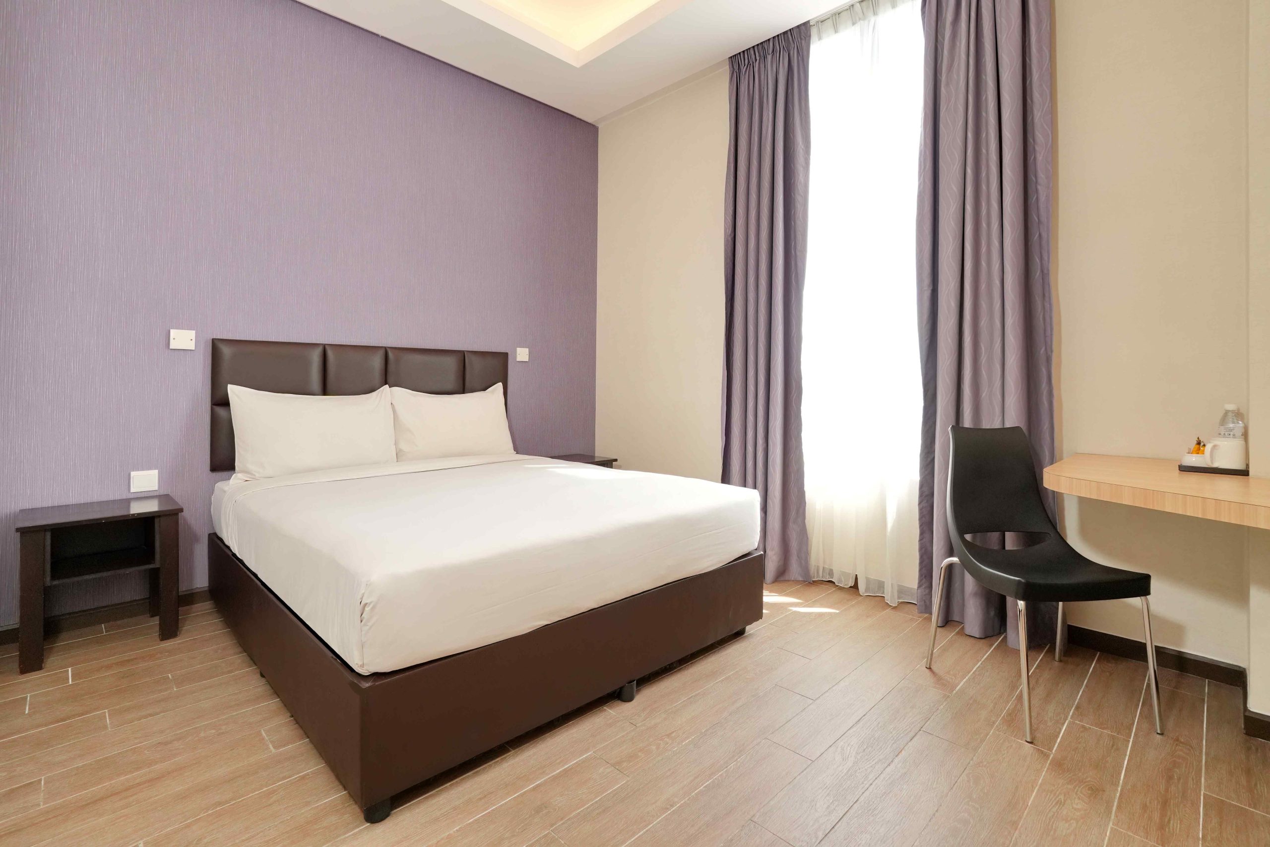 Newly renovated Family Executive Room offers a serene, spacious retreat with earthy tones and basic amenities. Features 2 Queen beds, plush mattresses, views of Ipoh Padang, and accommodates larger groups. Designed for comfort and functionality.
