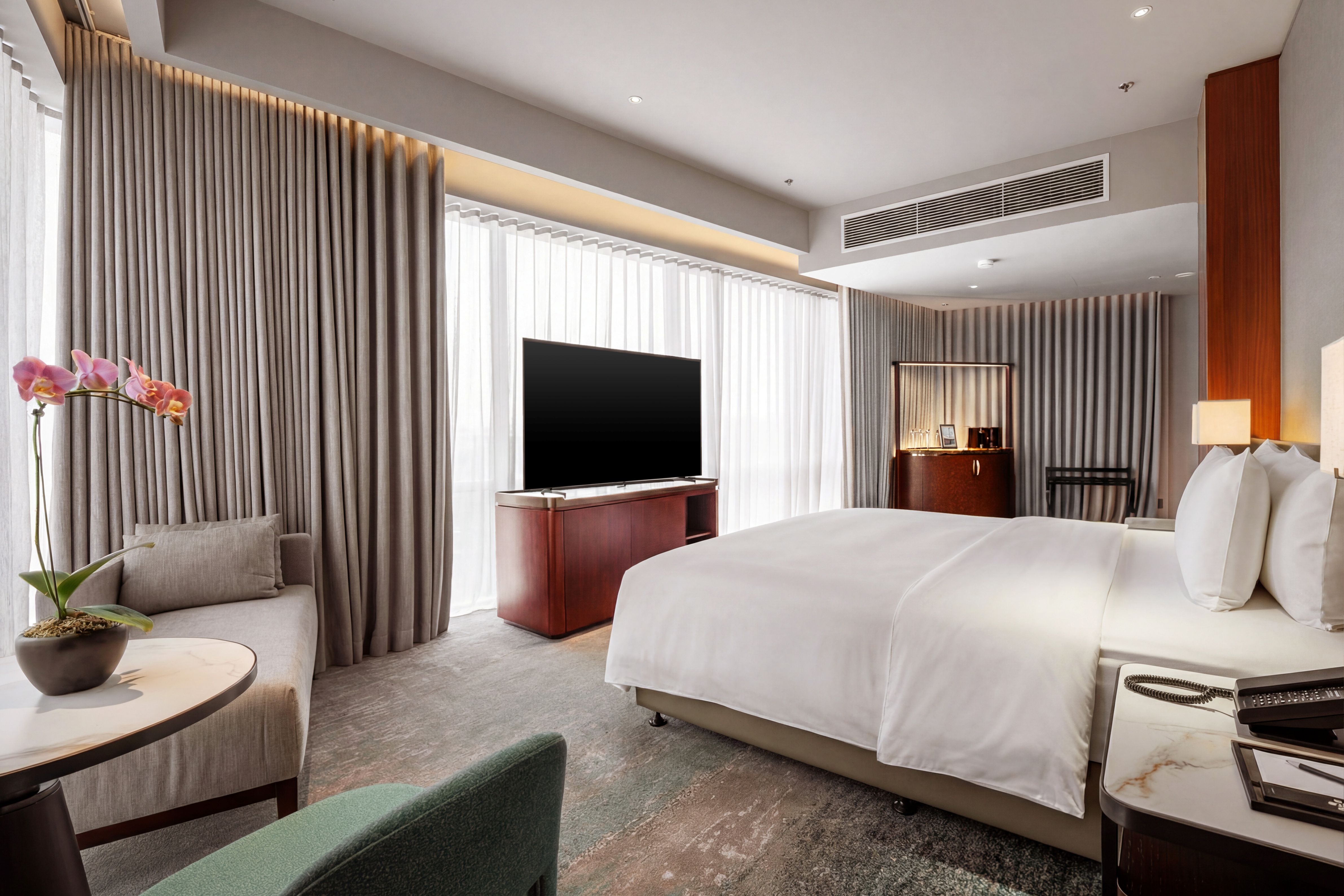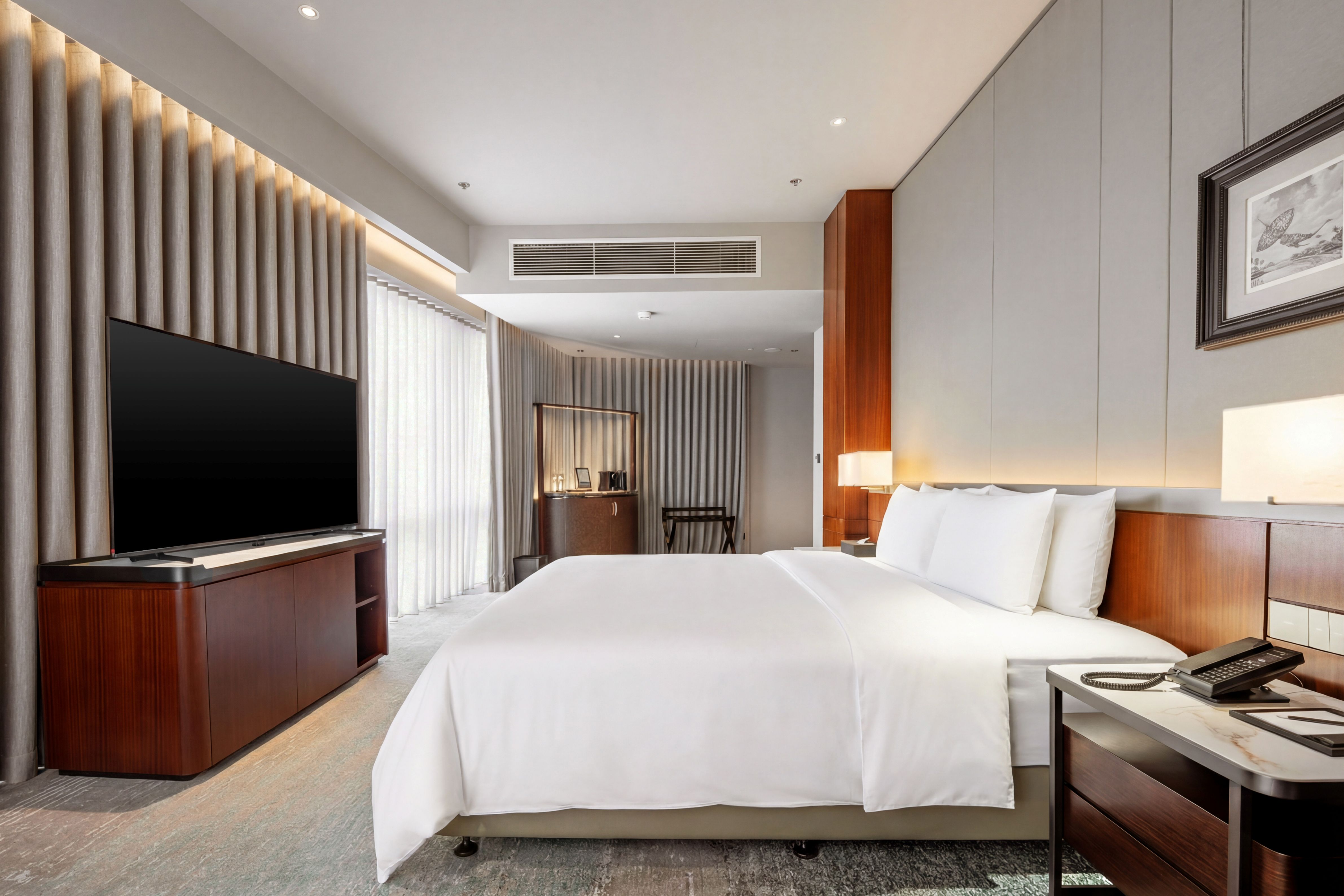 Discover a heightened level of comfort in our Premier King Rooms, offering 40 sqm of refined space designed with added attention to detail. The room features a spacious bathroom with a bathtub and separate rain shower, along with a well-appointed workspace for everyday convenience. Enhanced by a plush king-sized bed, premium bedding, a personalised pillow menu, and complimentary high-speed Wi-Fi, the Premier King Room delivers a more elevated stay for both business and leisure travellers.